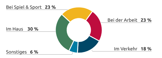 Viele Menschen gehen davon aus, dass Unfälle vor allem im Berufsleben passieren. Tatsächlich ereignen sich jedoch zahlreiche Unfälle im Alltag. Ca. 80 % der Unfälle passieren in der Freizeit, in der Sie nicht gesetzlich abgesichert sind: